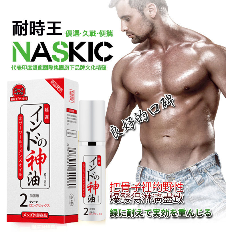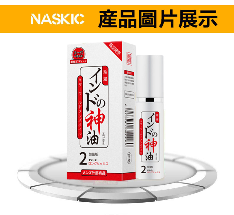 日本NASKIC耐時王神油幫助人們在床笫之間得到歡愉和滿足!塗抹或噴灑在龜頭上,目的在去除敏感度,延長性交時間。早洩從根本上說是射精反射所需的刺激閾值太低了,改善早洩就是提高射精刺激閾值,增加陰莖對性刺激的耐受性。